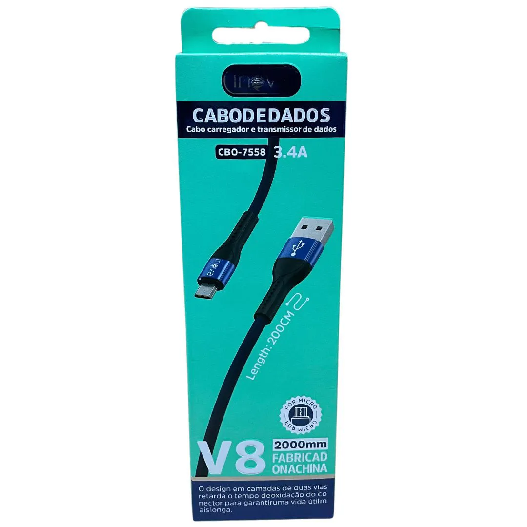 O Cabo V8 CBO-7558 Inova é a solução ideal para quem busca eficiência e praticidade no carregamento e transferência de dados. Com 2 metros de comprimento, este cabo oferece liberdade de movimento, permitindo que você utilize seu dispositivo enquanto ele está carregando. Com uma capacidade de 3.4A, ele garante um carregamento rápido e seguro, perfeito para smartphones, tablets e outros dispositivos compatíveis.